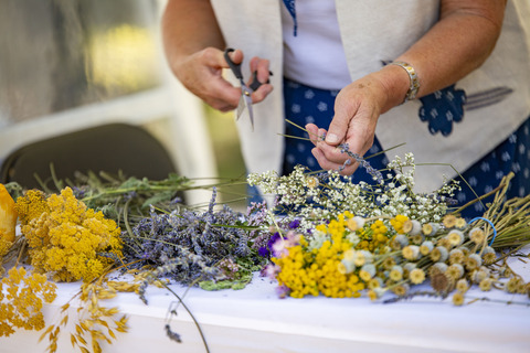 Bauern aus der Region ermöglichen den Einkauf erntefrischen Obstes und Gemüses für Küche und Speisekammer. An den Markständen locken u. a. frischgebackenes Bauernbrot, süßer Honig, Leinöl und duftende Kräuter. Das Schöne an diesem Markt ist, dass es nicht nur die fertigen Produkte zu kaufen gibt, sondern auch Einblicke in jahrhundertealte Techniken und Gewerke gewährt werden, die vielfach schon fast vergessen sind. So kann man der Weberin am Webstuhl über die Schulter sowie den Trachtenstickerinnen und -stickern auf die Finger schauen. Töpfer, Muldenhauer, Reetdachdecker zeigen, wie ihre Produkte entstehen. Man kann erfahren, wie Leinöl entsteht oder Seile einst hergestellt wurden. Sehenswert sind auch die Flachsverarbeitung, das Binden einer Erntekrone und das Packen eines Heuschobers (Samstag ab 14 Uhr). Ein buntes Rahmenprogramm präsentiert Traditionen, Trachten, Tänze und Musik. Am Samstag kann bis in die Nacht getanzt und gefeiert werden.